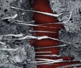 Fibras de Vidrio dentro del alma de yeso de una placa